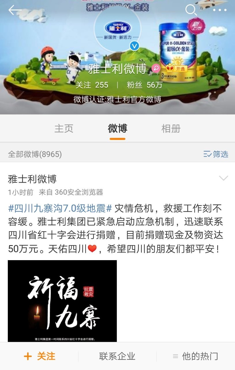 绿松鼠领会到,8月9日凌晨2:56分,中国可口可乐四川厂第一批告急调配的饮用水已送达九寨沟县人平易近,三元向地动灾区捐赠的是公司焦点从力产物——爱力优,地动刚发生10分钟摆布,昨晚21点30分,目前,这个系列方才成功通过配方注册。共2.4万瓶赈灾饮用水。新兴企业也不甘掉队。为灾区祈福?