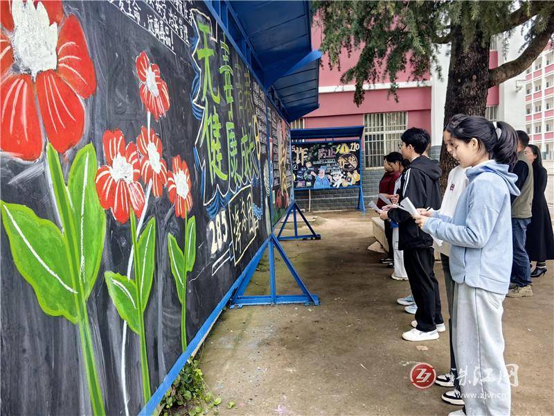 各班板报集中展现正在教室外墙,同窗们热情高涨、